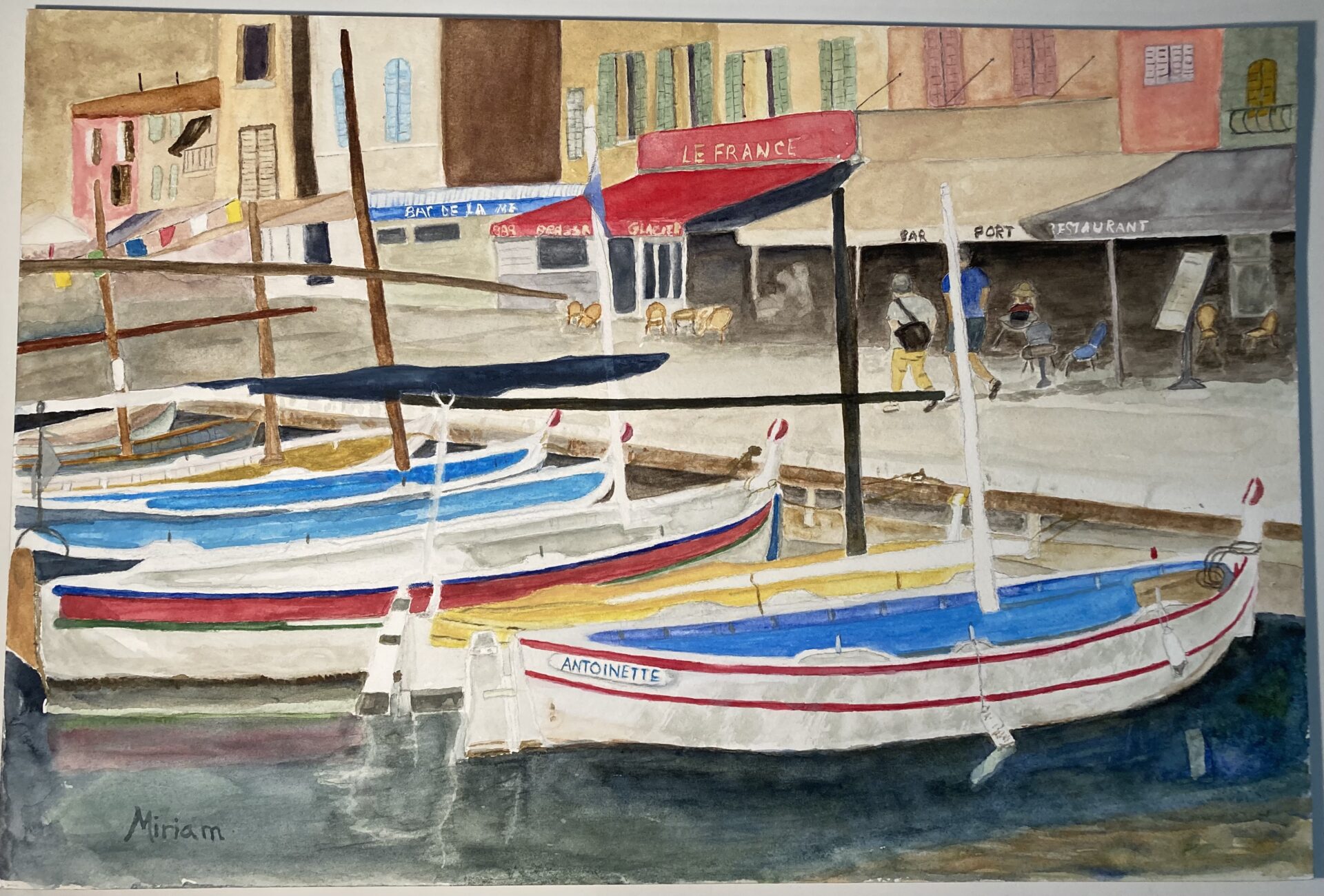 While visiting Casis, France, I was struck by these beautiful antique French boats with the closest one named Antoinette . It made the perfect postcard!