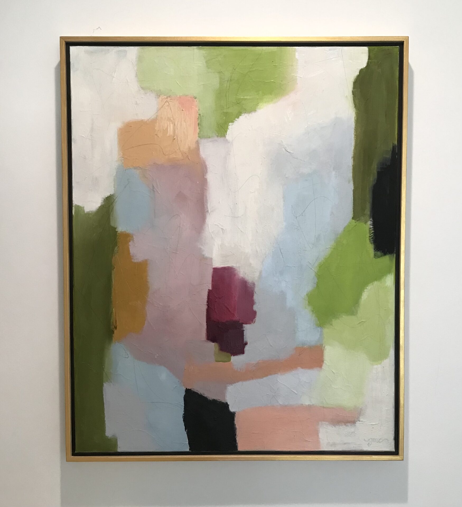 I love the freedom of painting an abstract. You might be surprised to learn that there are many, many layers, and what I start with will ultimately result in an entirely different painting in the end. It is an opportunity to let go of perfection, turn inward, and go with the flow. For this painting, I veered in a new direction with my color palette to see where it would take me. Knowing when to stop is the challenge, but I have learned to trust the artistic process.