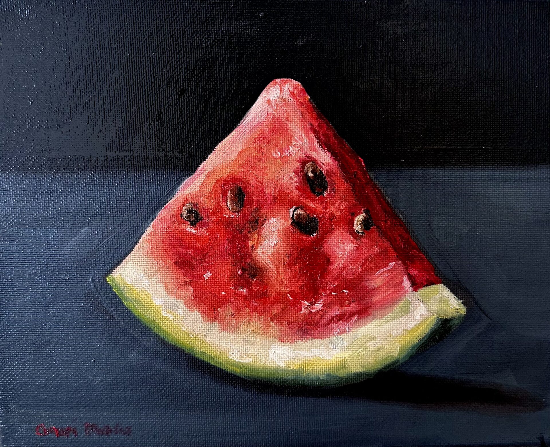 Much of my work focuses on the manifestation of identity, particularly black identity. In my portraiture, I often focus on identity and depict the consistently powerful presence of the black figure. I’m frequently looking at the dialect between a history of aristocratic representation and the use of portraiture as a statement of power. In response to this, I elevate my figures to a level of high culture or power that is classically unavailable to them as black females. This claim to power can be as subdued as a figure who is unafraid to confront the viewer with her gaze (as in “Julie”) or as assertive as a figure cloaked in regalia (as in “Our Lady”). My classical rendering of portraiture diverges and eradicates some of the classic tropes of the western art canon (by my unconventional figures). I view this reformation of who is typically depicted in portraiture (and how) as the juxtaposition of the “old” inherited by the “new”. One artist I’m inspired by is Kehinde Wiley. I particularly look at the sensitivity of his figures and his depiction of urban identity. In my work I explore the contrast between self-identity and social-identity. This dissonance between the world that you know, what you mean as a symbol in public, and the imposed identity society places upon you, gives that strange and uncanny feeling of having to adjust for this double consciousness.