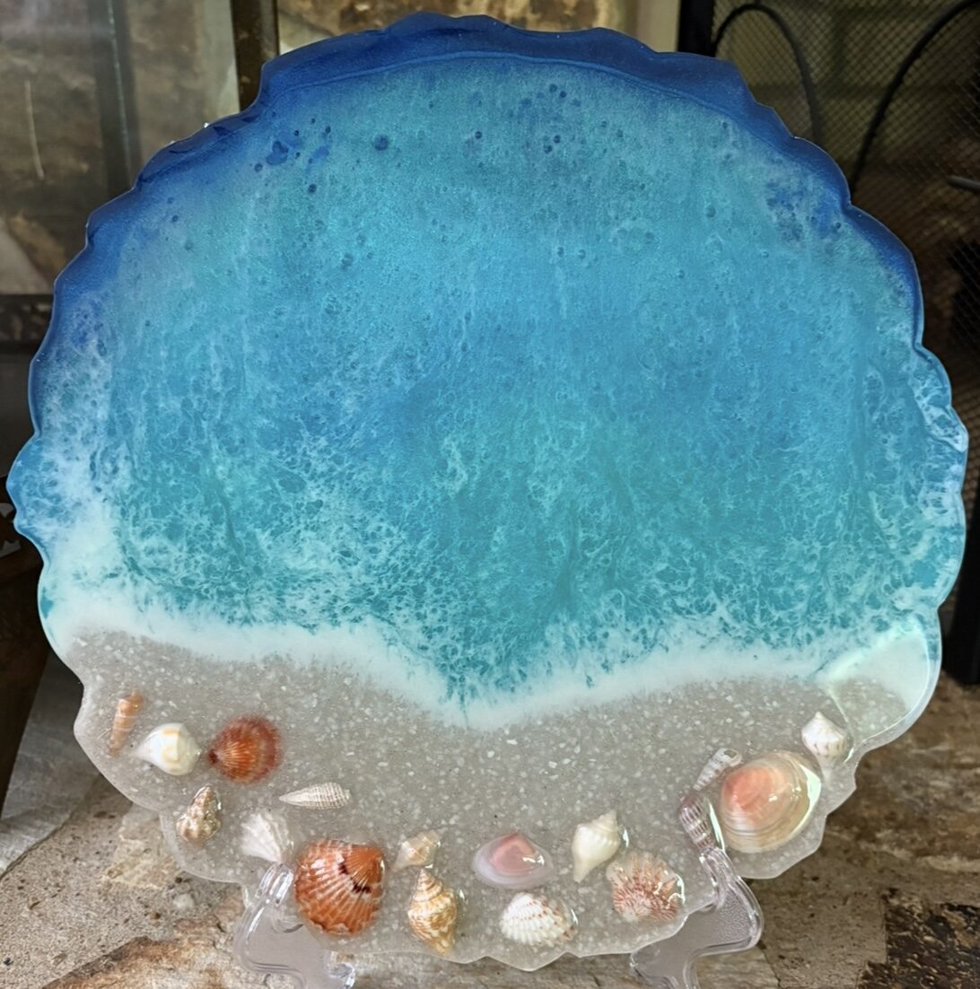 My love for art started with seeing a beach resin coaster video. I’ve enjoyed making fluid art (both resin and acrylic) ever since that day!