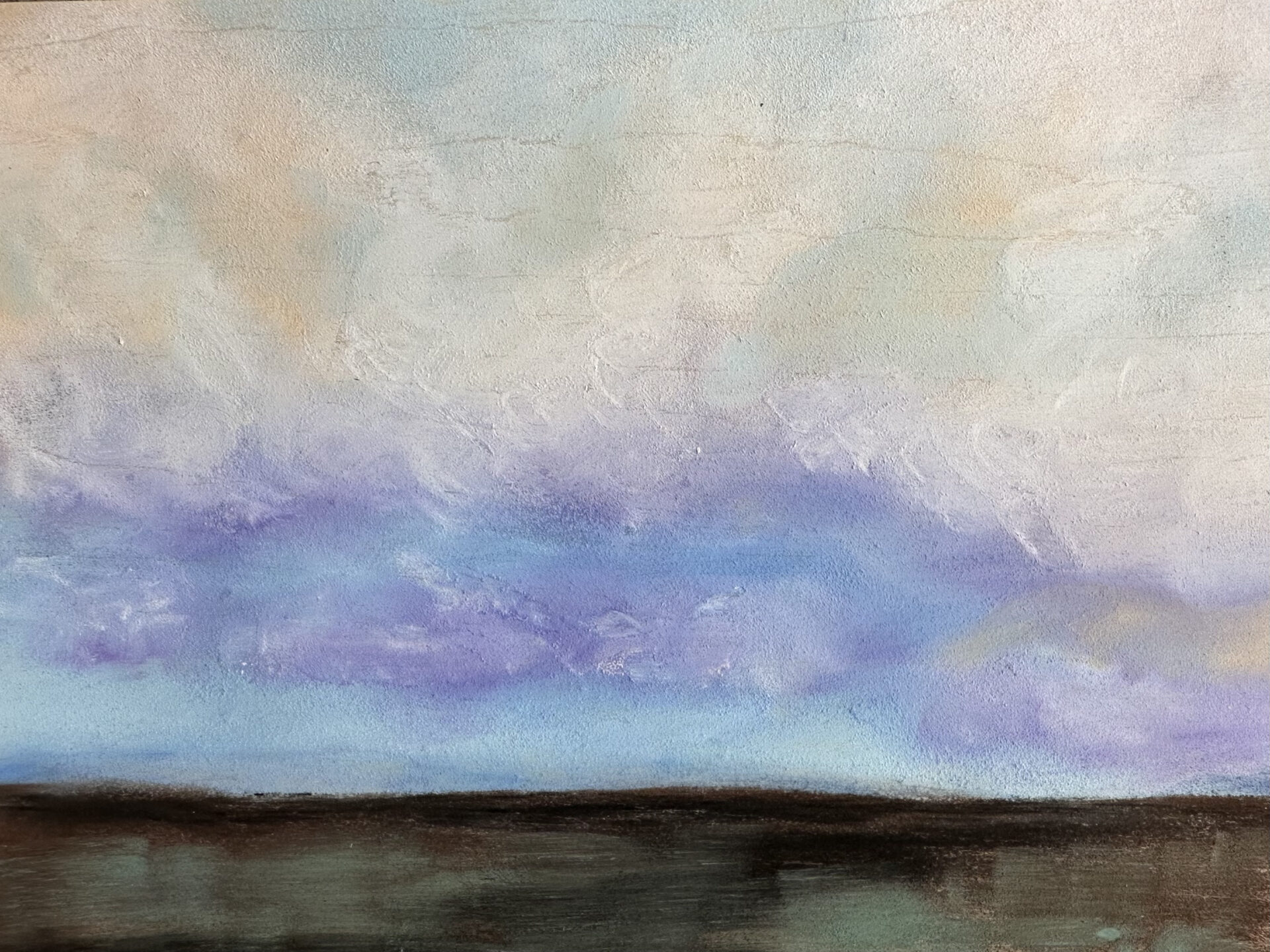 My landscapes are a blend of real places and personal impressions. I work across multiple surfaces, using mixed media on canvas, fresco on marble dust panel, acrylic on birch and watercolor on paper. I’m especially drawn to the space where land meets sky – the horizon line. It acts as both a boundary and a bridge, linking the tangible with the infinite. That in-between space is where I feel most at home, on the edge of land and air, looking out at the sky. Sometimes, I add a streak of color or a bit of metallic leaf to highlight or blur the divide between land and sky. I like the idea that each viewer might see their own horizon line. Even a subtle mark can be enough to spark a feeling. My botanical work is inspired by the layers of color, texture, and movement in nature. I’m not trying to copy what I see, but to capture how it makes me feel. I’m less interested in realism and more in capturing an emotional response – how a tangled vine or overlapping petals convey growth resilience, and connection. I grawistte toward clusters and intertwining forms because, like in nature, we thrive when surrounded by those who encourage us to bloom. Architectural elements also emerge in my work. Faint outlines of pathways, archways or weathered structures. These details add a sense of place without telling the whole story, leaving room for the viewer to step in and make their own connections.