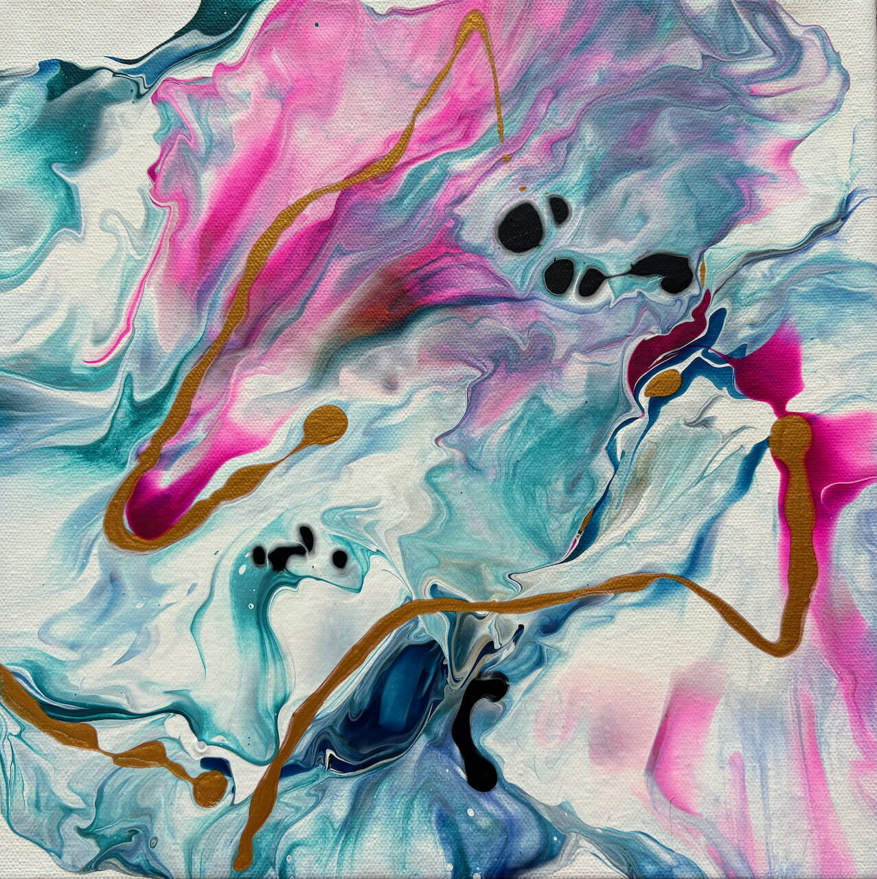 My artistic journey has involved experimenting and exploring a variety of mediums such as acrylics, encaustics, pastels, alcohol inks, marbling inks, silk dyes, pen and ink, charcoal, pencil sketches and mixed media. My process of discovery includes playing with each medium much like a child, and really connecting to it viscerally. Each medium must connect to my inner soul as though it is an extension of my being. Because my work is non-representational, the art has its own unique heart and soul; there is no realistic frame of reference.